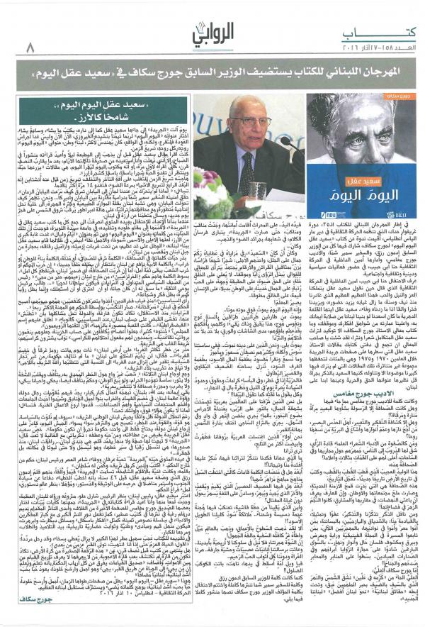 وفي هذا الإطار، صدر عن منشورات «درغام»، كتاب «سعيد عقل اليوم اليوم» للوزير السابق جورج سكاف، ويضمّ كتابات الراحل سعيد عقل في «الجريدة»، بالإضافة إلى ذكريات سكاف مع سعيد عقل تحت عنوان «عصر سعيد عقل: ذكرياتي الغالية مع كبير العصر».